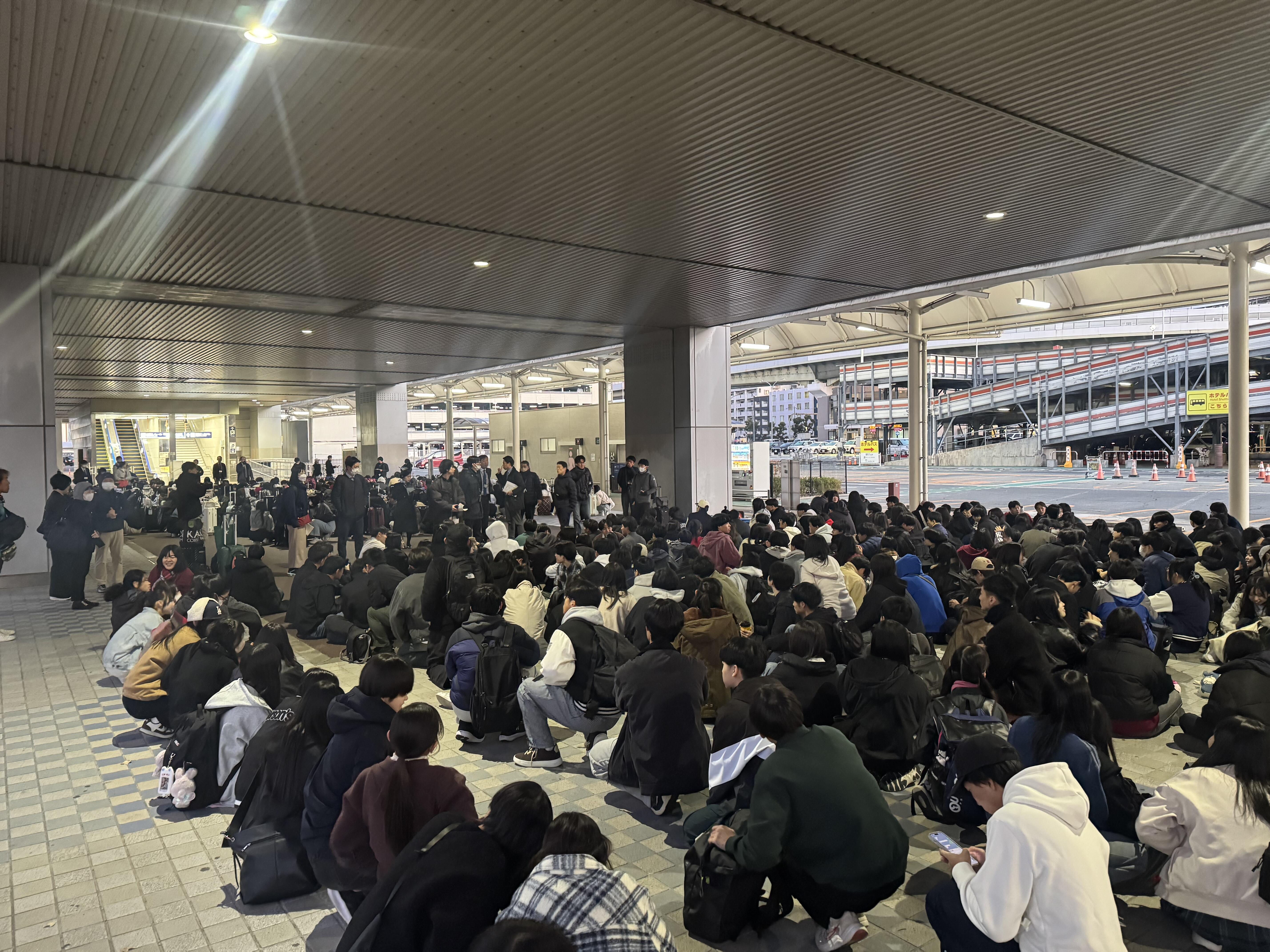 おはようございます! 大阪空港、1階団体広場に集合し、いよいよ出発です! 朝はとても寒く、はやく沖縄に行きたい気持ちでいっぱいです。