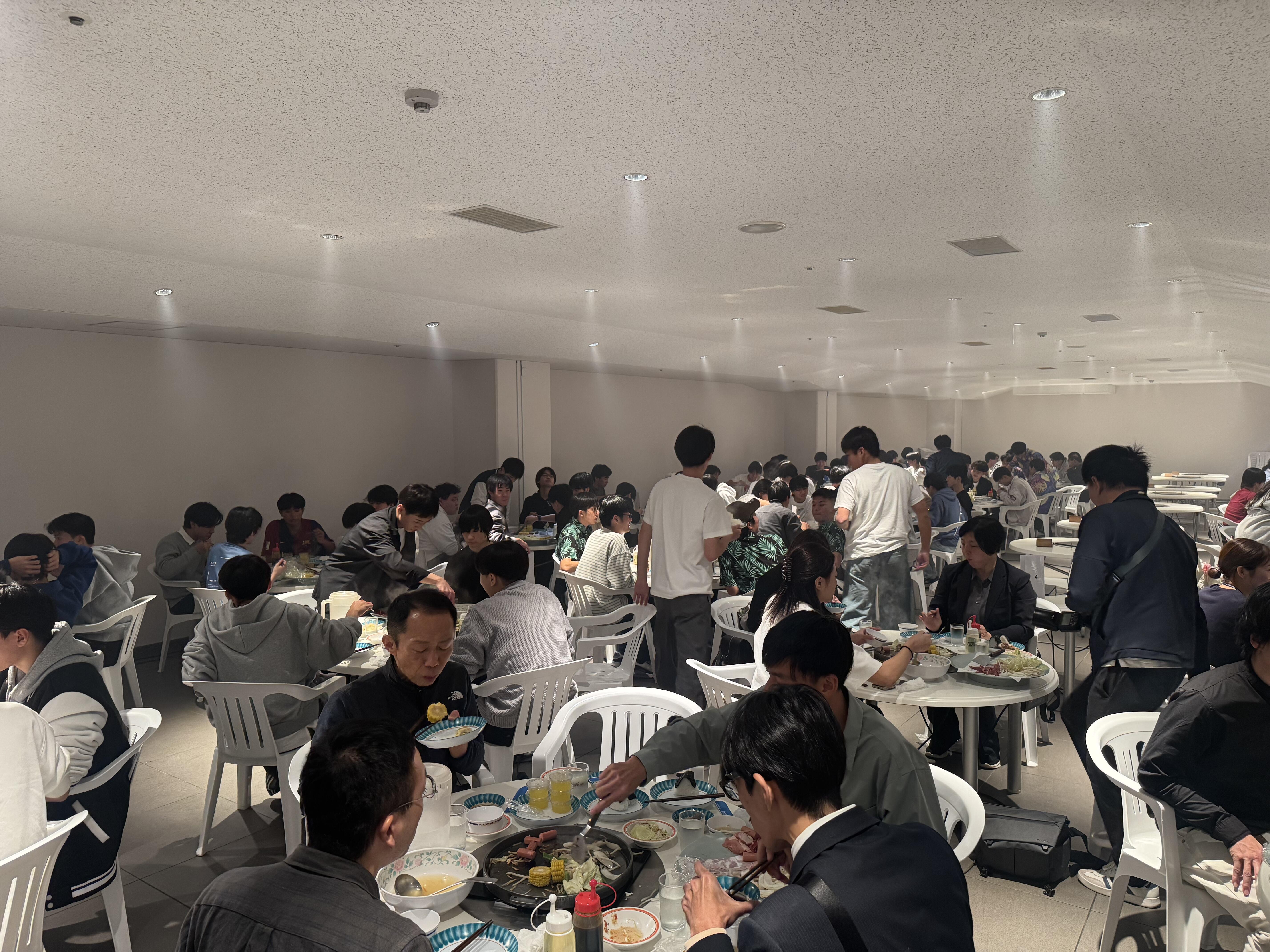 本日の夕食はBBQでした! みんなで鉄板を囲み、楽しく食事できました!