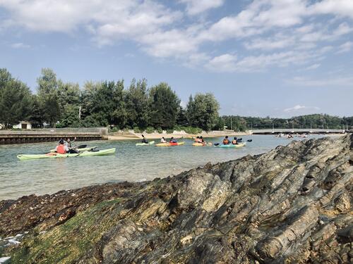 12月ですが、沖縄はまだまだ暑い! 元気にカヌー体験をしています。 みんないい顔をして楽しんでいます!