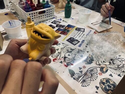 琉球村にてそれぞれの班に分かれてクラフト体験を行っています。 みんなの想像力が爆発して、素敵な作品を生み出しています。 修学旅行の思い出の品になること間違いなし!