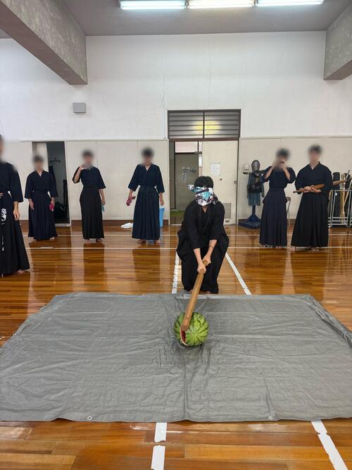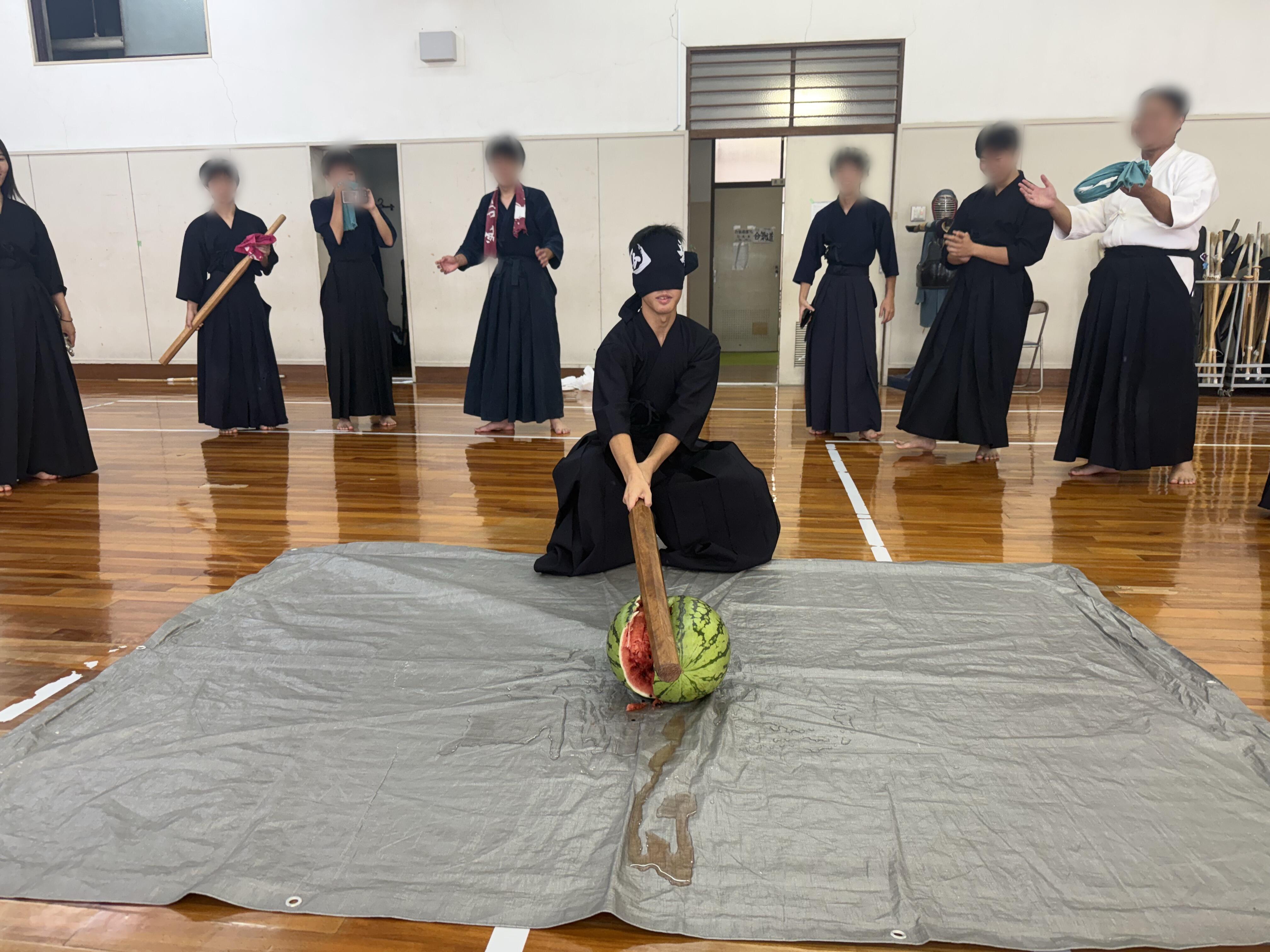 審査前日には夏の稽古納め兼審査激励会としてスイカ割りを行いました。