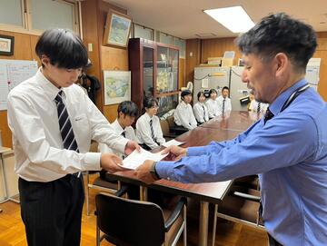 昨日10月15日(水)7限に令和7年度生徒会役員選挙の立会演説がありました。私は出張につき直接聞けませんでしたが、選挙も無事に終わり、新執行部が誕生しました。そこで本日16日(木)昼休みに校長室にて標記のイベントを開催しました。