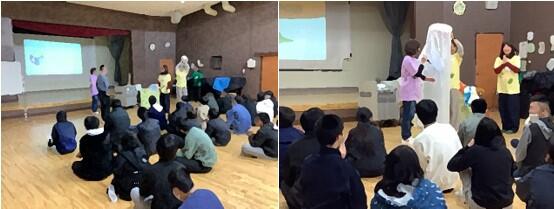 各学部に分かれて、それぞれ妊娠、出産、命の尊さについて、子どもたちに分かりやすく優しい言葉で、話をしていただきました。赤ちゃんになったつもりで胎盤に見立てた布の中に入ってみたり、新生児を抱っこする体験をしたりしました。真剣に話を聞いている児童・生徒の姿が印象的でした。