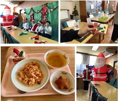 また、2学期最後の給食となった23日の献立はクリスマスメニューとして、チキンライス、星形コロッケ、コンソメスープにセレクトケーキが出ました。「おいしい!」と言いながらお腹いっぱい食べている姿が印象的でした。