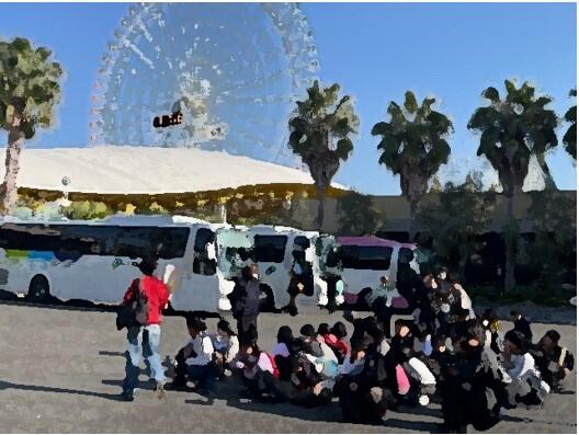 昨夜お世話になったホテルオリーブの方にお礼のご挨拶をして、バスに乗り込み、名古屋港水族館に向かいます。