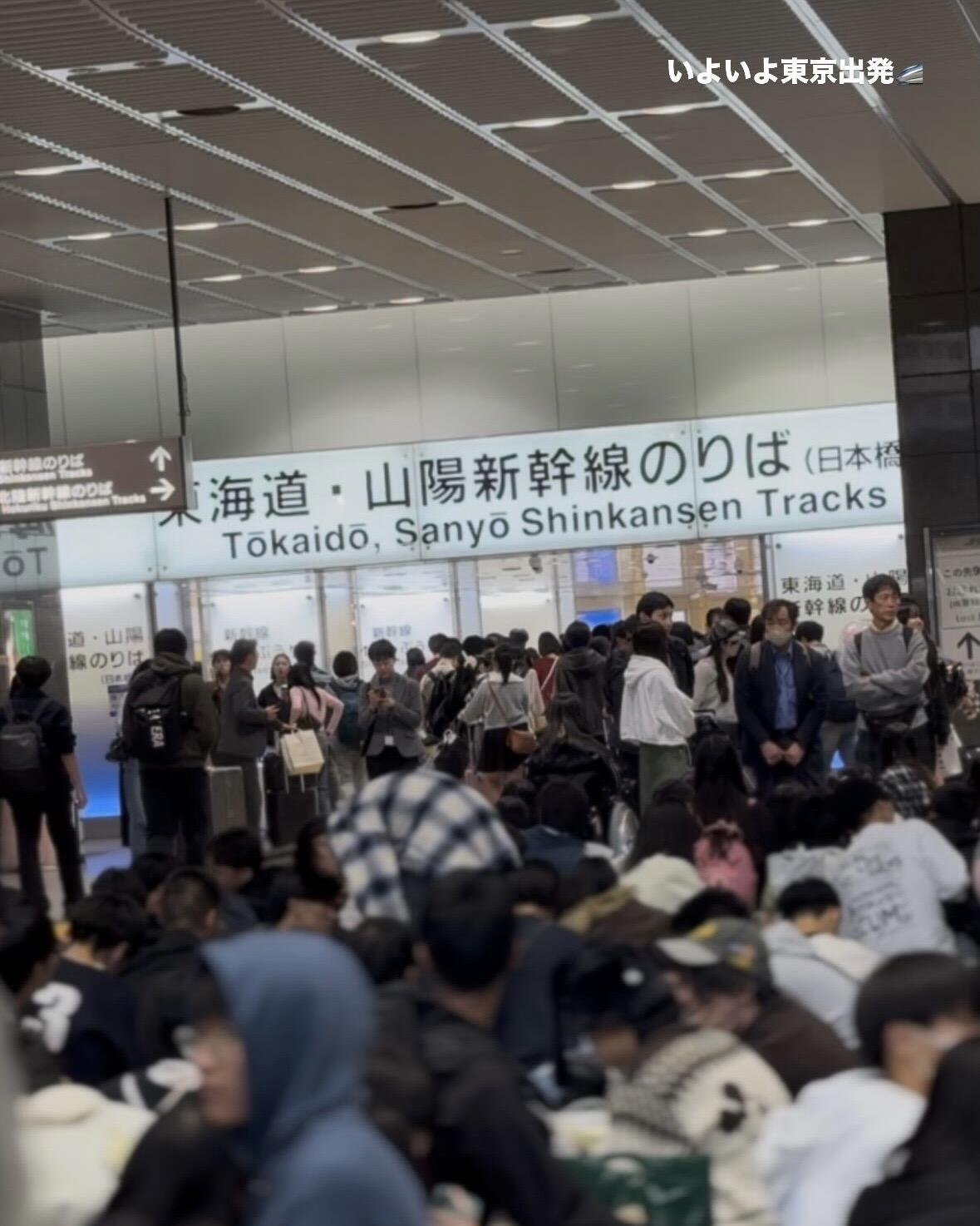 雨が降ってきて、新幹線のりば前は大混雑😱