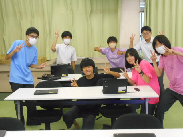 デジタル部の皆さんです。もっとたくさんの部員数なんですが、文化祭の展示物確認の時におられた皆さんです。昨年度にDXの推進校に決まってから、作られた部なのですが、当初から一気に部員数が多くなり、活発に活動をしてくれています。文化祭で映像部門なんかで参加してくれたり、ロボット体験やプログラム体験なんかをもっと大々的に企画してくれたら面白いと思います。この日の自作のゲームも大変よくできていました。いろんなことでこれからも活躍してください。