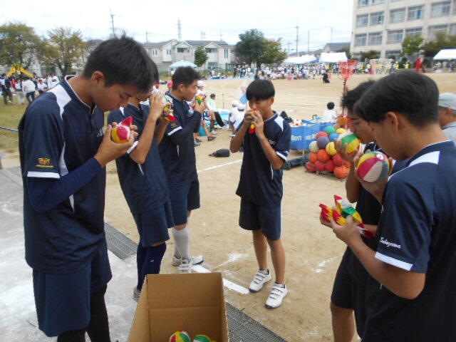 10月12日(日)曙川東小学校に於いて市民スポーツ祭が行われました。今年もそのお手伝いに本校生徒に声をかけていただきました。部活動の生徒の皆さんへの呼びかけに快く応じてくれ、野球部の生徒さん10名が用具係や進行係などのお手伝いをさせていただきました。また、地域からのお手伝いでも、本校生徒の皆さんが何名か来てくれていました。私が教員でいたときから部活動の生徒を派遣していました。もう40回をむかえる行事です。こういうイベントというのは、小さいお子さんから高齢者の方々までのお世話をさせていただくことで、何かいつもと違った優しい気持ちになれることが本当にいいことだと思います。曙川東地区を通学路と使わせていただいている本校にとってこういったことで協力連携させていただくことは地元の学校として非常にありがたいことです。また、お声がけください。