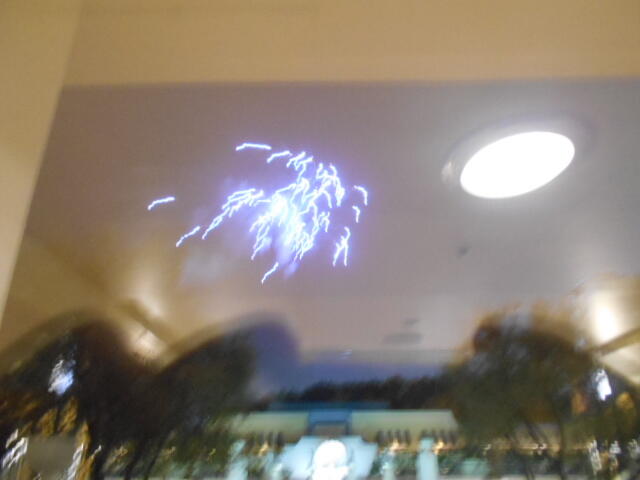 8時を過ぎたところで花火が上がり始めました。パレードが終わって、フィナーレになったと思われます。今から一気に生徒の皆さんが帰ってきます。部屋ごとに人員点呼をして、ルームキーを渡し、本日の注意をこの場面でスムーズにしないといけません。170人が一気に帰ってきます。先生方が配置についていきます。
