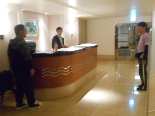 ホテルについたら、順番に部屋ごとに並んで点呼を受けたのち、室長が部屋番号を言ってルームキーをもらいます。もらった部屋のメンバーは、ホワイトボードの諸注意を直接教えてもらってから部屋移動になります。これを全部屋分やります。特に人員点呼は、ここでのミスは取り返しがつきませんから綿密です。その分時間がかかり混雑します。しかし、安心安全には変えられませんので、きちんとやります。生徒の皆さんもしっかり協力してくれて、全員無事移動完了、確認完了でした。これから就寝までの時間をホテル内の散策や、入浴をはじめ部屋で過ごすことになります。