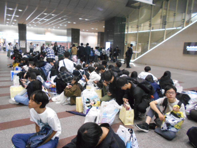 駅の中で並び直して、点呼を受け直したのちに新幹線に乗り込みました。いよいよ帰阪になります。生徒の皆さんからは、昨日からそうですが、「もう終わりか」とか「あと1日ほしいな」とかの言葉が聞かれます。それぐらい楽しかったのかなと感じることが多く、少し安心しています。昼ご飯を食べられませんでしたので、駅弁をおいしく車中でいただきました。