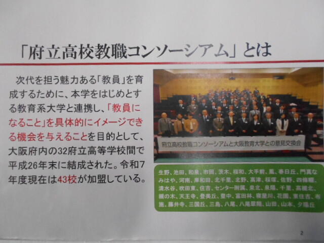 1月9日(金)、天王寺の大阪教育大学の中の未来教育共創館というところで、府立高校教職コンソーシアムと大阪教育大学との意見交換会に参加させてもらいました。この取り組みは、平成26年度に府立高校の32校で結成されたもので、現在は、教職をめざす課程のある学校や、教員養成系の大学に進学される生徒が多い学校などが中心になり令和7年度では43校が加盟しています。八尾翠翔は教職トライコースがありますから、早い段階から参加してきました。この日は、様々な大学との交流事業について、この1年間の取り組みや未来に向かっての意見交換をさせてもらいました。八尾翠翔の教職トライコースでは、こういった連携事業を活用して大学から講義に来てもらったりもしています。