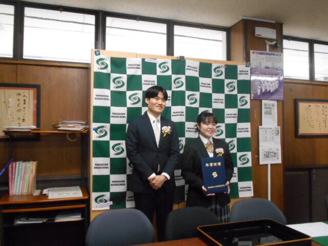 2月27日(金)の朝に、3年生の担任さんが校長室に来ました。「昨日、受験のために卒業式に出席できていない生徒がいます。卒業証書を渡してやってもらえませんか?」という話でした。卒業式当日には昼から出張で私が学校にいませんでしたので、相談できなかったのです。「わかりましたできる限りの準備をしましょう」ということで、手分けして、お花を飾り、校旗や盆を出して、即席なんですが、何とかかたちを作りました。保護者の方も臨席してくださり、3年担任団の先生も参加してくれました。みんなでやる公式の卒業式もいいですが、この、1人の卒業式にもいっぱい気持ちがこもっていていい式だったと思います。希望の進路が実現してくれることを願っています。卒業おめでとう。