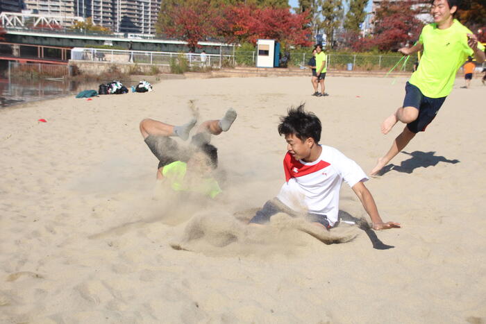 今日は大阪ふれあいの水辺で浜練習をしました🏖🏃♂️初めての浜練で凄く楽しそうにしていました👍🏽✨️普段平地で練習をしているのでいつもよりとても疲れたと思います😮💨🌀最後はみんなでビーチフラッグをしました🚩🚩終始笑顔が絶えなかったです😂お疲れ様です📣✊🏻 陸上競技部マネージャー