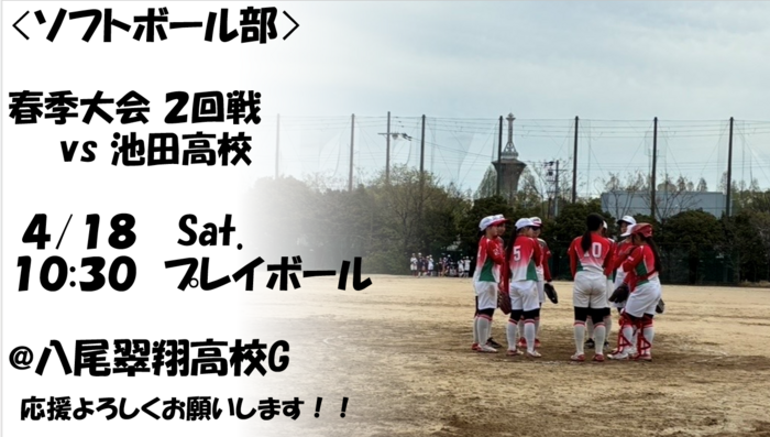 4/19に、春季大会2回戦が府立鶴見商業にて行われました。合同B(府立枚方なぎさ•いちりつ•守口東•長尾高校)との戦いでしたが、15-2●(4回コールド)で敗北となりました🥎緊張のせいか、序盤からミスが続いてしまう展開となりました💦選手、顧問にとっても悔しい試合となりました🏟️ただ、1年生も続々と入部してくれていて、チームとしての活気は出てきています!3年生にとっては、引退まで約2ヶ月です🫨3学年...