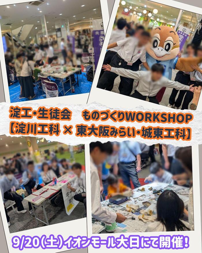 9月20日(土)イオンモール大日にて、本校・生徒会と東大阪みらい・城東工科高校生がコラボしワークショップを開催しました。当日は多数の皆様にご参加いただき、キーホルダー作りやLEDアクセサリー作りなどを楽しんでいただきました。また、関西万博公式キャラクター「ミャクミャク」や大阪府公式キャラクター「もずやん」も私たちのブース横に来場し、会場は大いに盛り上がりました。今回のイベントを通じ、学校間の垣根を超え生徒同士の交流を深めた"かけがえのない"一日となりました。ご来場いただきました皆様、ならびに会場をご提供いただいたイオンモール大日の皆様に厚く御礼申しあげます。