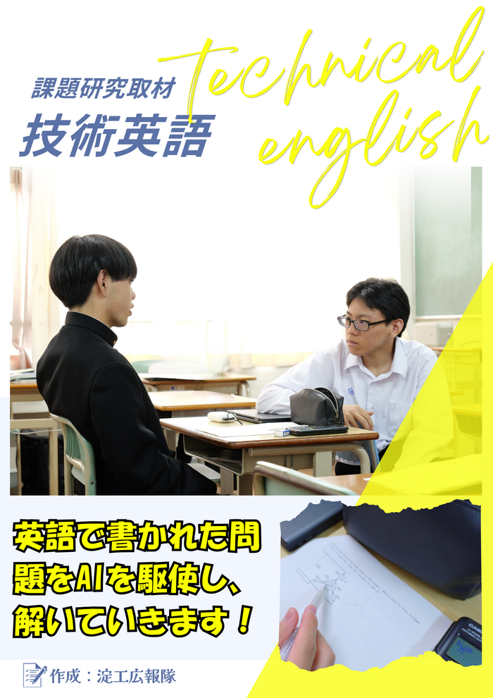 秋晴れに鰯雲が流れる頃となりました。こんにちは。淀工広報隊です!今回は「 技術英語 」の取材を行いました!この班では、電気回路の問題が英語で書かれており、英語と工業の両方を駆使して活動しています!協力しながら問題を解く生徒も多く見られ、学びに積極的な姿勢が撮影できました!担当の先生は、「 非凡なる平凡 」という名言を放たれました。平凡な日常を特別な情熱や継続力をもって行うことで、それが結果として非凡な成果につながるということを意味しています。ほんとうにおっしゃる通りだと思います!これからもいろいろな班に取材を行っていきます!次回もお楽しみに!!