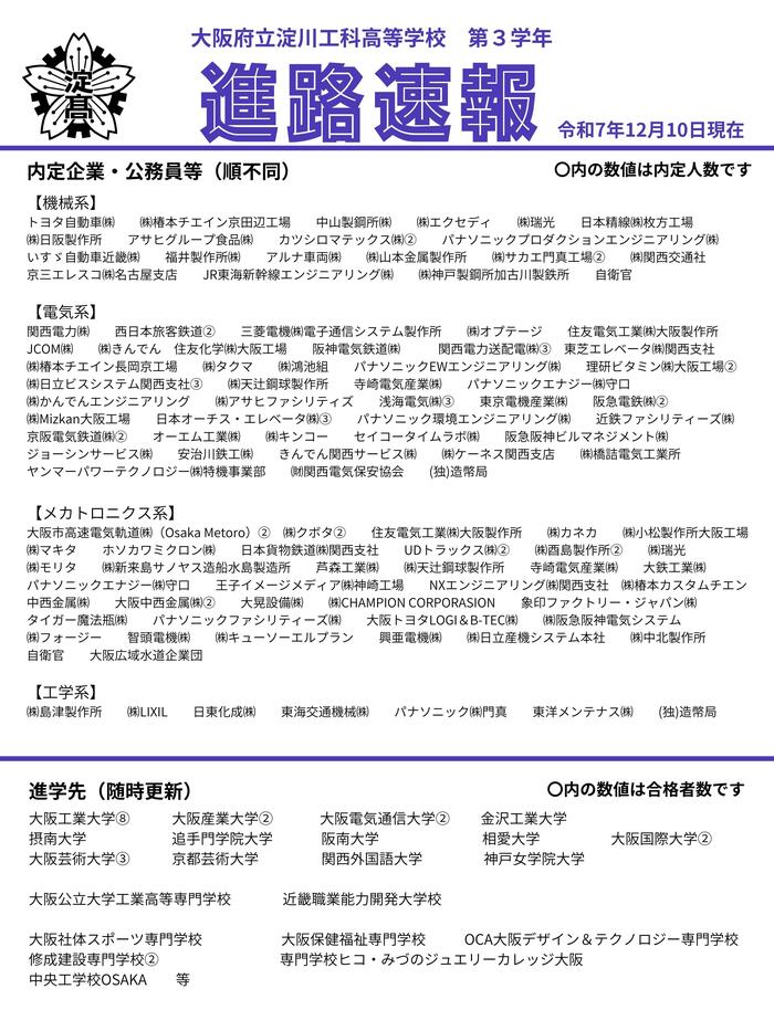 今年度の就職試験に関し合格率(一次)は 約91% でした。その後、再度挑戦した生徒も合格を勝ち取り、今年度の内定率も100%目前です。進学希望者は推薦入試を利用し、4年制大学を中心とした各大学への合格を実現しています。今後も生徒の皆さんの希望と適性を踏まえ、進路実現が叶うようサポートしてまいります。