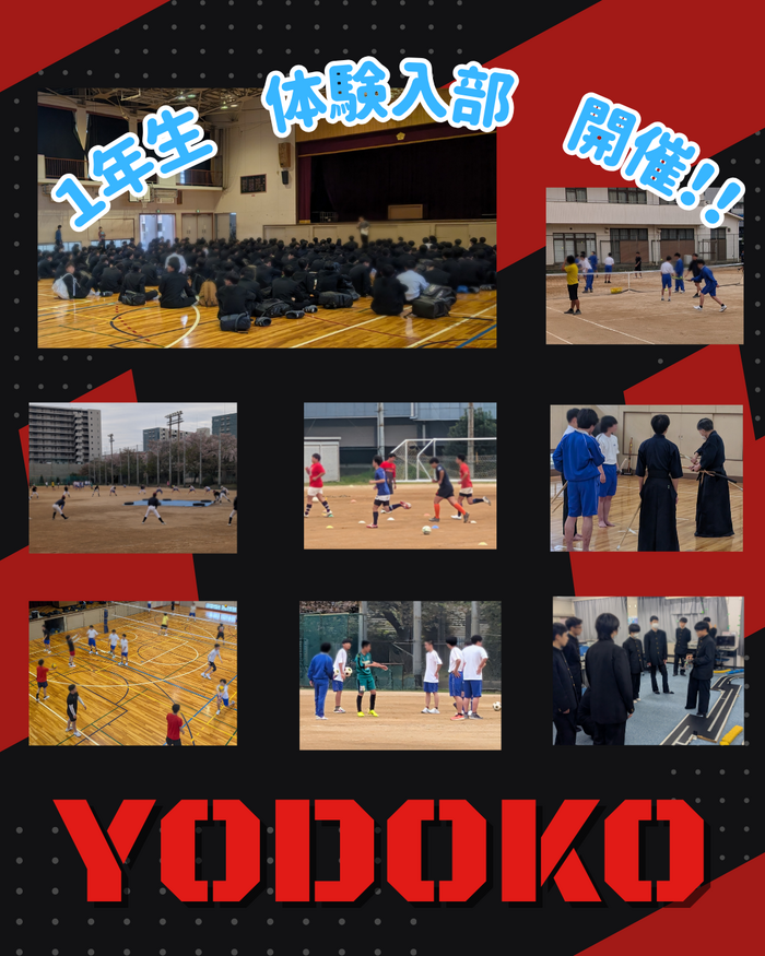 4月13日(月)および14日(火)の午後にて、新入生への体験入部が開催されました。野球やラグビー、サッカーなどの運動部ならびに、全国レベルの吹奏楽部やロボット研究部などの文化部で行われました。各部が趣向を凝らした演出で新入生を歓迎し、先輩たちの熱意に触れ、新たな一歩を踏み出す1年生の姿が輝きました。部活動は、一生の絆と自信を育む場所。この場所での挑戦が、新入生の皆さんにとって高校生活を最高に有意義なものへと変えていくのではないでしょうか。そして、皆さんのエネルギーで淀工を全力で盛り上げていきましょう!