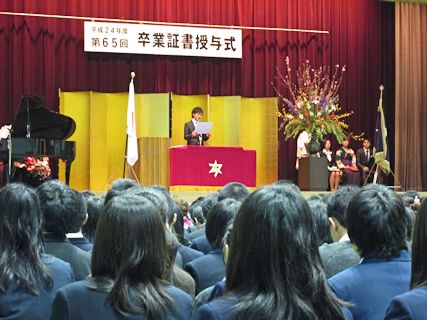 一人一人呼名され、クラス代表が卒業証書を受け取りに