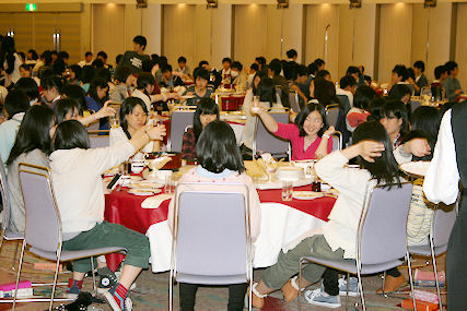 クラスごとに円卓を囲んで、行儀よく和やかに食事。
