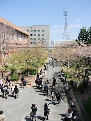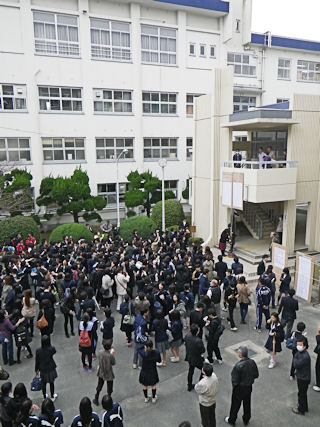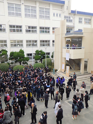 ![]() 晴れ渡る空のもとの入学式 |