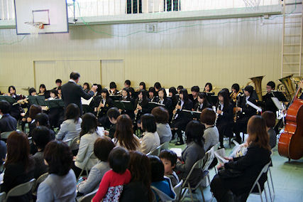 ![]() ブラスバンド部が演奏する中、 |