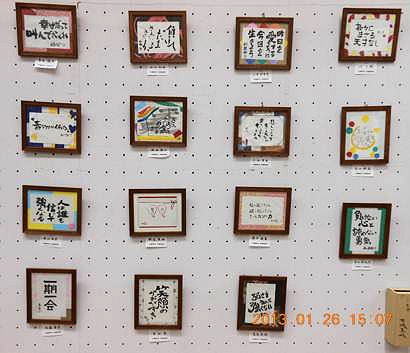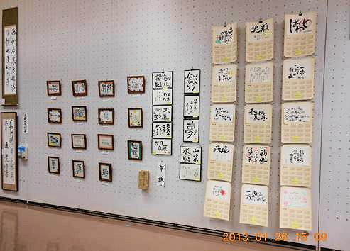 書道の授業で制作した作品(1年生「カレンダー作品」、2年生「額縁作品」、3年生「ラミネート作品」)の中から、表現力豊かな作品を選抜・出展しました。