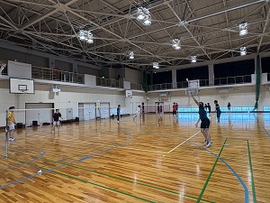 | 2年生男子2名・女子3名、1年生女子5名の計9名で活動しています。ネットは女子の高さに合わせて、男女一緒に基礎練習を中心に練習しています。経験者も少なく初心者が多いので、気軽に体験に来てください! 練習場所:体育館 練習曜日:月・金 練習時間:15:30~17:30(多少の変更あり) |