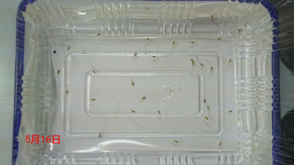 その後も約3週間から1ケ月間隔で出産(卵胎生なので体長2〜3mmの稚魚が母体から生まれる)し続け、