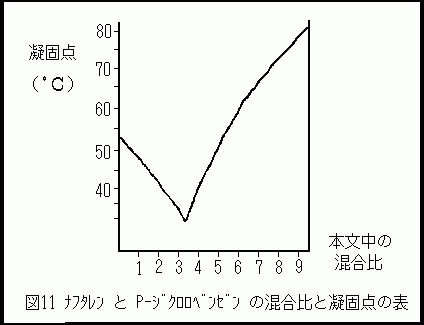 混合すると、約29℃で液状になる。この図11から、混合物の凝固点が、純物質のそれに比べ