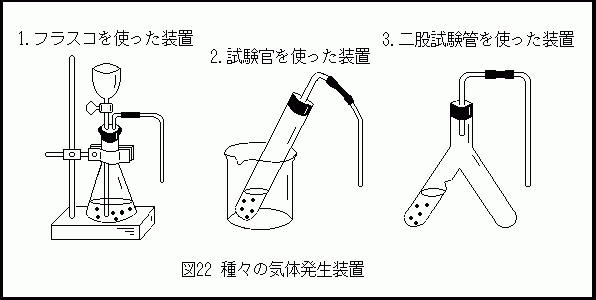 @ 図22のように、三角フラスコ(または丸底フラスコ)を使って気体を発生させる。