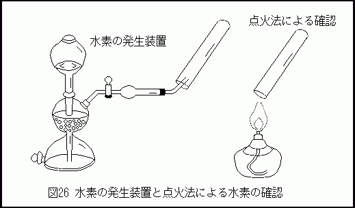 発生した水素を試験管にとって点火する。試験管中の水素が爆発範囲内の組成であれば爆