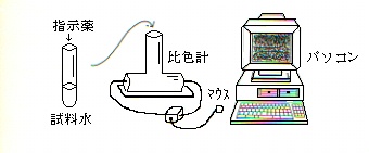 比色法によるpH測定は、一定量(10ml程度)の試料水に酸塩基指示薬を加え