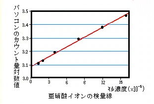色に発色させる。亜硝酸イオンの量に応じて発色しており、その吸光度を比色