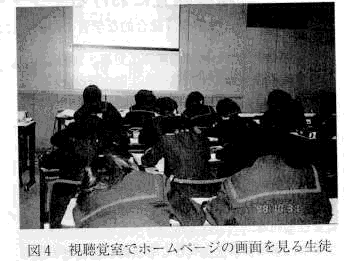 なお,実践校では電話回線の設備がないため,固定ディスクにホームページを取り込み,プロジェクターで画面を拡大して学習を行った(図4).