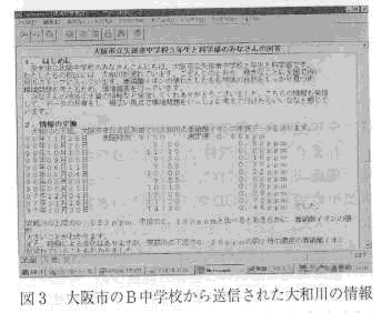 また,自分たちの質問に対して,他から回答が返ってくることを大変喜び,意欲的に学習し,環境への理解も深まったと思われる.さらに,環境への関心も高まり,生徒の希望により水質調査に続いて大気中のNO2の測定も3学期に行うことになった.