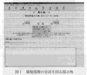 平成8年12月に開設した「子ども達が測定する大阪の環境」3),比色計とコンピュータを用いた環境調査の方法を紹介し,大阪府内の小・中学校での実践結果を掲載している4).このホームページに環境情報の交換を図る掲示板を追加し,各学校の測定データを送信してもらって公開する形式にした(図1).