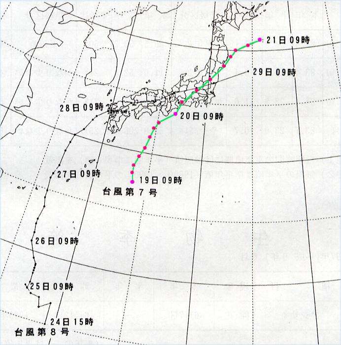 16日に発生した台風第7号は、20日午前、紀伊半島沖を北東進し、同日11時頃、愛知県豊橋市付近に上陸した後、関東・東北を縦断し、三陸沖に抜けた。