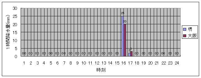 | 最大1時間降水量 | 25.0mm | 13日15時〜16時 | 堺 |