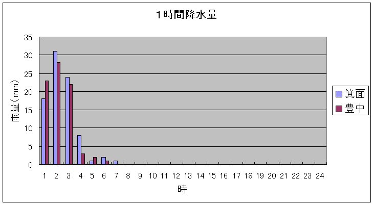 | 最大1時間降水量 | 28.0mm | 17日01時〜02時 | 豊中 |