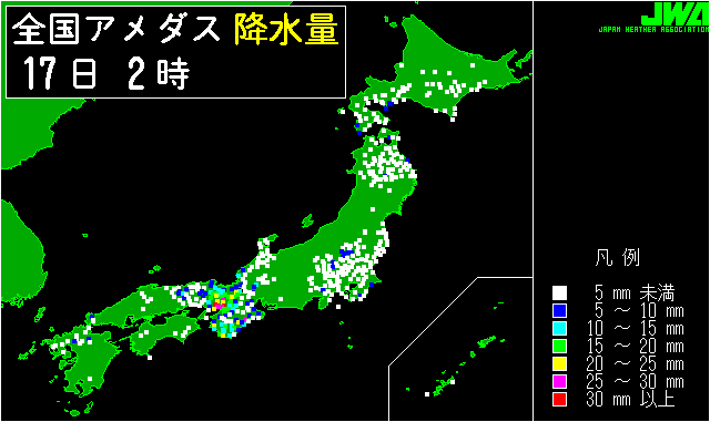 17日02時30分から04時55分にかけて、大雨・洪水警報が発表された。