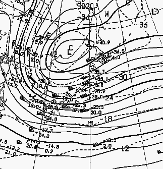 ![]() 500hPa天気図(上空約5km) 1997年1月21日21時 |