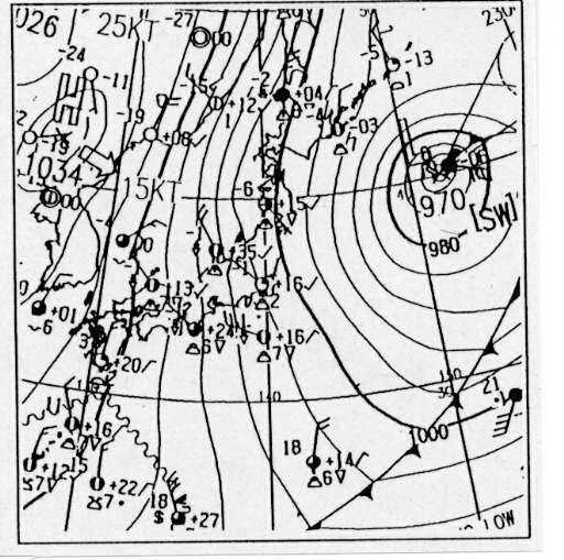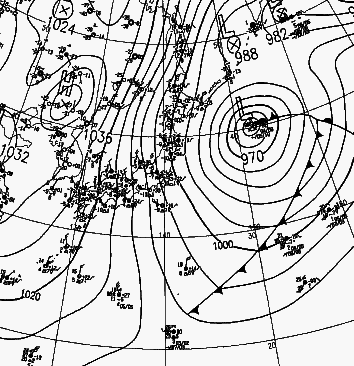![]() 地上天気図 1997年1月22日9時 |