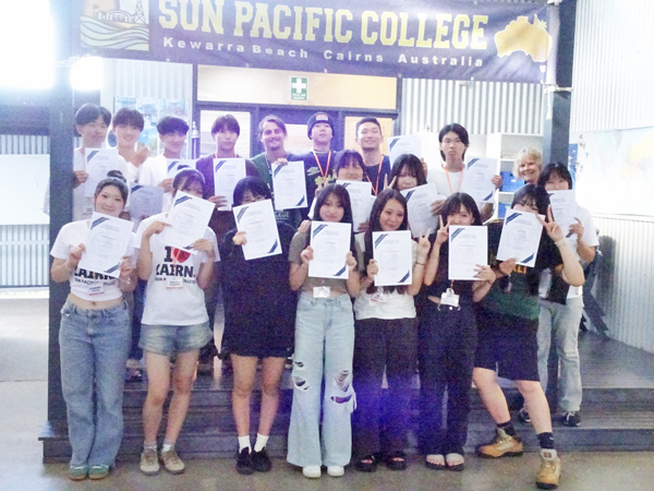 金岡高校では、令和7年度(2025)から本校単独での語学研修を実施しています。行き先は、オーストラリアのクイーンズランド州にあるケアンズという自然豊かな場所です。その中でも、高級リゾート地「ケワラビーチ」にあるSun Pacific College語学学校で「英語オンリー」で会話中心の研修をしています。研修中全期間を現地ホームステイ先で過ごす貴重な体験をしてもらっています。今年度は1年生を中心に17名の生徒さんが参加され、感動の日々を過ごされました。