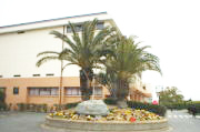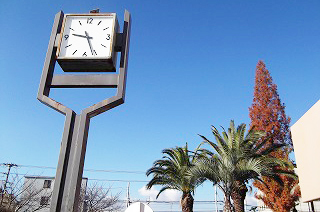 校門を入ってすぐ.巨大なソテツの木がお出迎えしてくれます。ソテツの周りには綺麗な花が添えられています。