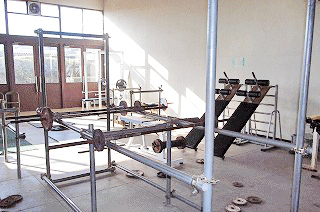 トレーニング・ルームでは、運動部の生徒が早朝から活用して、体を鍛えています。