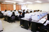 情報の授業で使われるLAN教室は生徒一人に一台のパソコンが使える他、2人に一台、先生の説明を映し出すモニター画面があります。