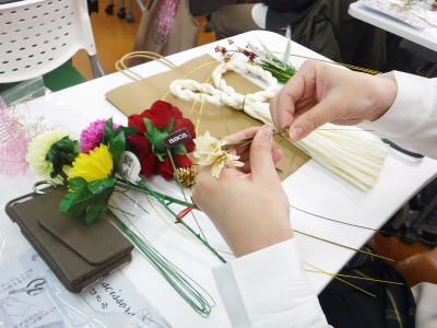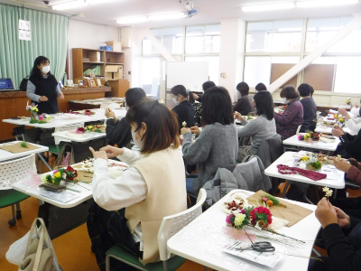PTA講習会は、松岡先生にご指導を頂き「フラワーアレンジメント(しめ縄リース)」の制作を行いました。みなさん自分の好きなアレンジで楽しく制作されました。