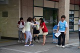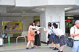 | 事前活動 街頭募金 7/8&9生徒たちの感想・報告です。7月8日、9日の2日間に阪急茨木駅前で北摂つばさ高校とコリア国際高校の生徒と一緒に募金活動を行いました。 初めはなかなか声が出なかったのですが、他校の方のリードもあって、少しずつですがビラを配ることができました。 受け取ってもらえず素通りされることもあったのですが、中には「頑張ってね」と声をかけてくださる方もいて、本当に嬉しかったです。 2日目には募金箱を持たせていただいたので、募金してくださる方々と直接お話しをすることができ、より強く募金箱の重みを感じました。 3年という月日は、私たちにとってはあっという間と感じるかもしれませんが、東北の方々にとっては長く感じられたのではないでしょうか。 この募金活動の結果は、まだ東北のことを忘れずにいる人がいることの証明でもあると思います。 だから、この募金活動を通じて私が感じたことも東北に行ったときに現地の方に伝えたいと思います。【2-5 岡松】 第1日目(7/8) 第2日目(7/9)